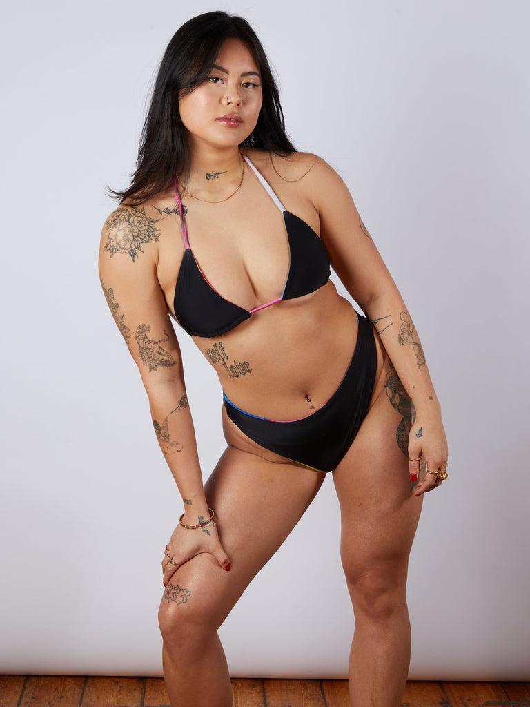 If You Have A Fuller Bust We Recommend Ordering One Of Our Largest Sizes Like Our 2nd Model. You Then Have Maximum Material For Coverage & Have The Option To Ruch The Cup To Show More Side Boob, If You're Into That!